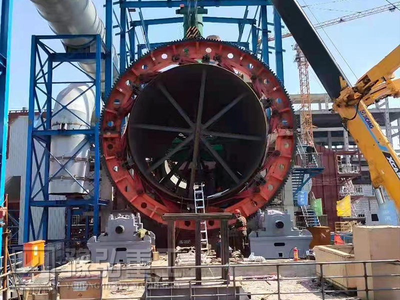 物料通過斜槽將從氣室送入窯尾。由于窯筒體是傾斜的,且輕微旋轉,物料在筒體內沿周向翻滾的同時,沿軸線由窯尾向窯頭移動。經過預熱處理,分解,煅燒,物料將被送入冷卻器。在窯頭,燃料將通過天然氣或煤炭燃燒器方式,在窯內被燃燒。熱量通過火焰輻射、熱氣流、耐火轉傳熱傳遞給物料。熱量足夠加熱和煅燒物料,并使其成為最終產品。