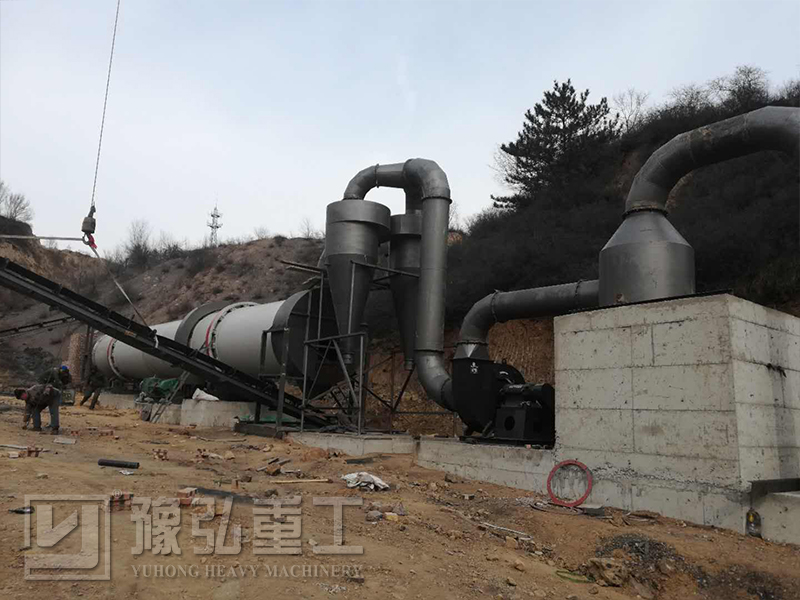 原料砂將由皮帶輸送機或斗式提升機送入料斗中。砂旋轉干燥器是一個帶有水平線的稍微傾斜的旋轉圓筒。原料砂將從較高端進入,而熱空氣進入從低端進入,與原料砂形成逆流接觸。隨著滾筒的旋轉,在重力作用下原料運行至烘干機的末端。濕原料,在筒體旋轉的過程中向前移動,直接或間接地從溫度超過500℃熱空氣獲得用于干燥濕料的熱量,然后通過安裝在排量端末端的螺旋輸送機或皮帶輸送機排出。砂子烘干機筒體壁內側裝有揚料板,揚料板起著揚料作用,增加了材料和空氣流之間的接觸面,以提高干燥效率。