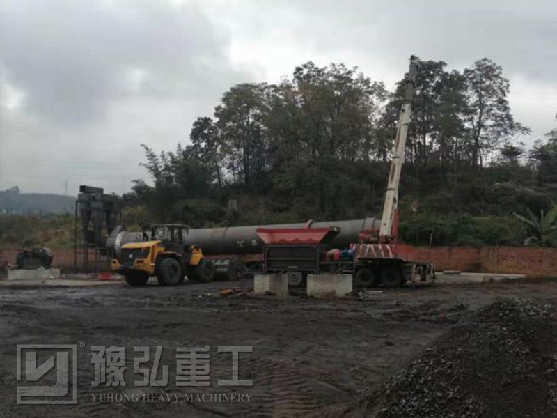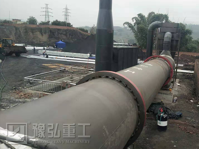 該套設備工作原理如下:物料由于具有一定的粘性,濕物料進入干燥滾筒后分以下幾個工作區:一是導料區,濕物料泥進入此區與高溫熱風接觸迅速蒸發水分,物料在大導角的導料板抄動下,形不成粘結便被導入下一個工作區;二是抄起清理區,濕料在此區被抄板抄起形成料幕狀態,物料落下時易形成粘結滾筒壁現象,在此區由于設備設計有清掃裝置,清掃裝置便十分合理地清掃了內壁粘附的物料,在這個過程中,清掃裝置對于物料團球結塊也起破碎作用,從而增加了熱交換面積,提高了干燥速率;三是傾斜揚料板區,濕煤泥在此區已 呈低水分松散狀態,物料在此區已不具有粘結現象,經過充分熱交換后物料達到所要求的水分狀態,進入最后的出料區;四是出料區,滾筒在此區不設抄板,物料在此區滾動滑行至排料口,完成整個烘干過程。
