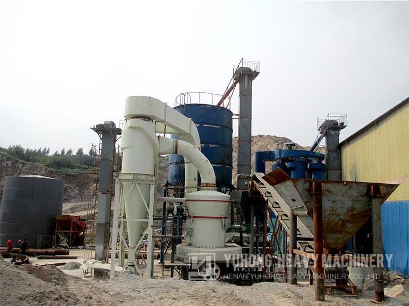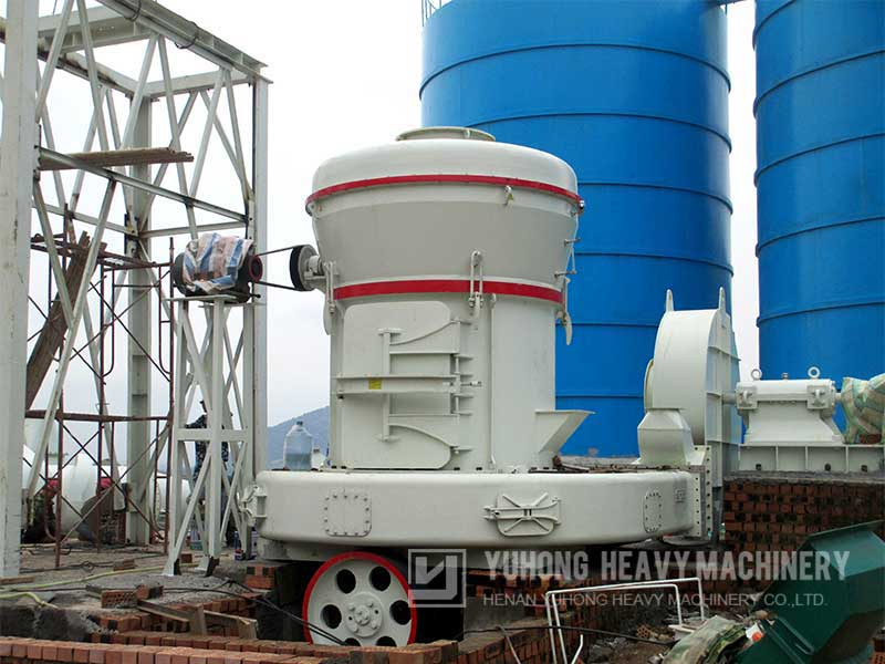 大塊狀物料經顎式破碎機破碎到所需粒度后,由提升機將物料送至儲料斗,再經振動給料機將料均勻定量連續地送入主機磨室內進行研磨,粉磨后的粉子隨風機氣流上升,經選粉機進行分級,符合細度的粉子隨氣流經管道進入大旋風收集器內,進行分離收集,經出粉閥排出即為成品粉子。氣流由大旋風集粉器上端回風管吸入離心引風機,本機整個氣流系統是密閉循環的,并且是在正負壓狀態下循環流動的。