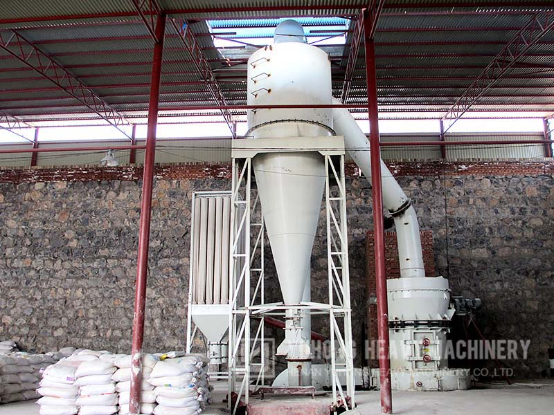 高壓懸輥磨主機(jī)內(nèi),磨輥吊架上緊固有1000-1500公斤壓力的高壓彈簧。高壓懸輥磨分級(jí),主機(jī)開始工作后,磨機(jī)磨輥圍繞主軸旋轉(zhuǎn),并在特殊高壓彈簧與離心力的作用下,緊貼磨環(huán)高速滾 動(dòng),其滾動(dòng)壓力比同等動(dòng)力條件下的雷蒙型磨粉機(jī)高 1.2 倍,故產(chǎn)量大為提高。當(dāng)被加工磨物料進(jìn)入磨腔后,由鏟刀鏟起送入磨輥與磨環(huán)之間進(jìn)行碾壓,碾壓后的粉末隨鼓風(fēng)機(jī)的循環(huán)風(fēng)帶入分析機(jī),合格細(xì)粉隨氣流入旋風(fēng)集粉 器即為成品,大顆粒物粒落回重磨。循環(huán)風(fēng)返回鼓風(fēng)機(jī)再重復(fù)以上過程,余風(fēng)則進(jìn)入袋式除塵器凈化。當(dāng)磨輥與磨環(huán)達(dá)到一定磨損后,調(diào)整高壓彈簧長度,保持磨輥 與磨環(huán)之間恒定碾壓力。從而保證穩(wěn)定的產(chǎn)量與細(xì)度。