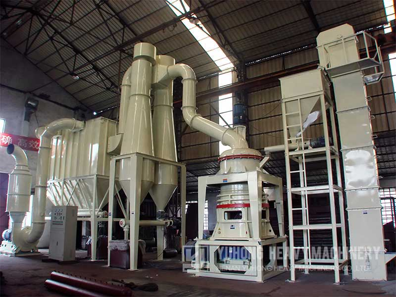 三環微粉磨粉機主機電動機通過減速器帶動主軸及各層轉盤旋轉,轉盤通過柱銷帶動幾十個環輥在磨環滾道內滾動并旋轉。大塊物料經錘式破碎機破碎成小顆粒后由提升機送入儲料倉,電磁振動給料機將物料均勻的送到上轉盤的中部,在超細磨粉機主機磨室內,磨輥總成通過橫擔軸懸掛在磨輥吊架上,磨輥吊架與主軸及鏟刀架固定聯結,壓力彈簧靠拉力桿緊緊的壓在磨輥軸承室的懸臂外端上。物料在離心力的作用下散向圓周邊,并落入磨環的滾道內被環滾沖壓、滾碾、研磨而粉碎,物料經第一層粉碎后又落入第二層及第三層,高壓離心風機的抽吸作用將外部空氣吸入機內,并將經過第三層粉碎后的粗粉帶入選粉機內。選粉機內旋轉的渦輪所產生的渦流使粗顆粒物料回落重磨,細粉則隨氣流進入旋風集粉器并由其下部的卸料閥排出即為成品,而帶有少量細粉塵的氣流則經過脈沖除塵器凈化后通過風機及消聲器排出。