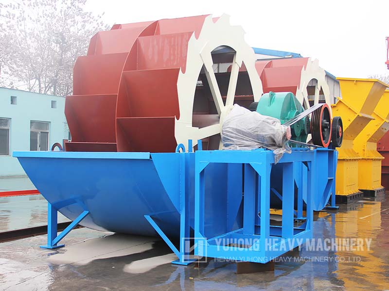 工作時,動力裝置通過三角帶、減速機、齒輪減速后帶動葉輪緩慢轉動,砂石由給料槽進入洗槽中,在葉輪的帶動下翻滾,并互相研磨,除去覆蓋砂石表面的雜質,同時破壞包覆砂粒的水汽層,以利于脫水;同時加水,形成強大水流,及時將雜質及比重小的異物帶走,并從溢出口洗槽排出,完成清洗過程。